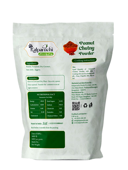 You can now elevate the taste of your meals & snacks with our Peanut Chutney Powder. Mix a spoonful of our peanut chutney powder with ghee to delight your taste buds. Our chutney powder gives a crunchy mouth feel & a vibrant flavor. We use native peanuts & traditional spices for preparing this lip-smacking delight from the house of Kalparuchi.